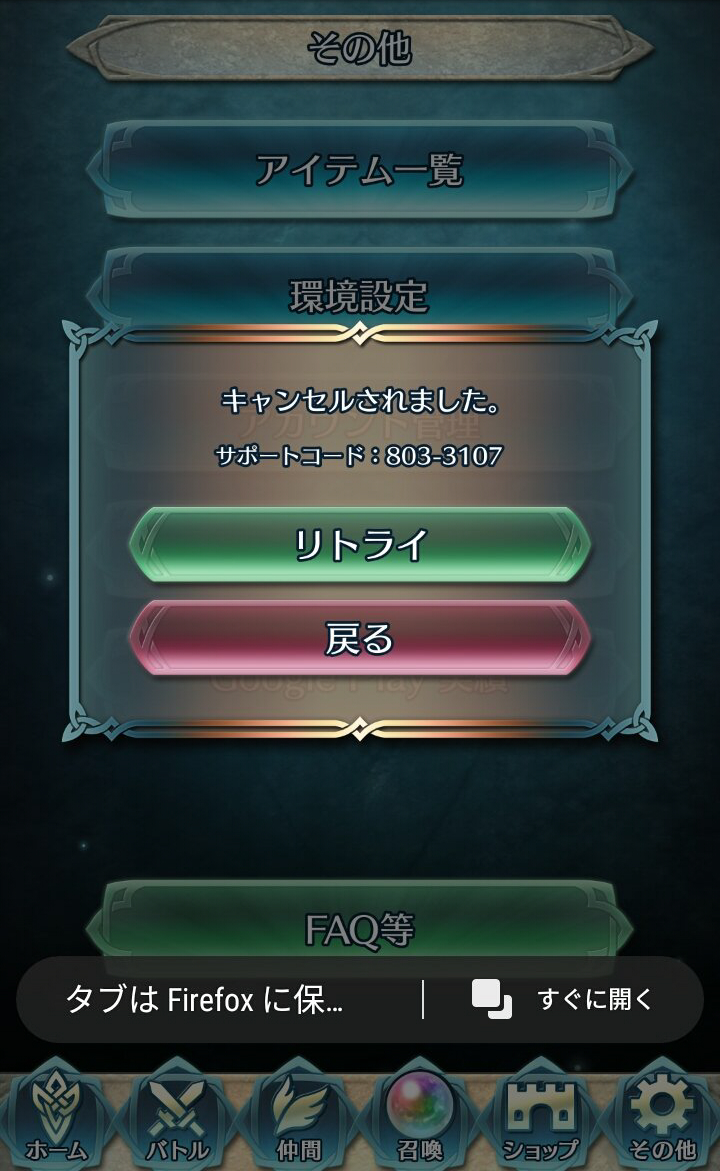 サポートコード「803-3107」が表示され連携できない…(・д・;)