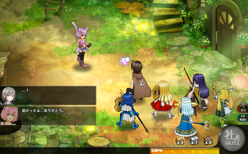 社員がそこそこ可愛く依頼パートの戦闘画面ではキャラクターたちが3Dになっているのですが、全員後ろ姿しか見えないのでちょっともどかしいです笑