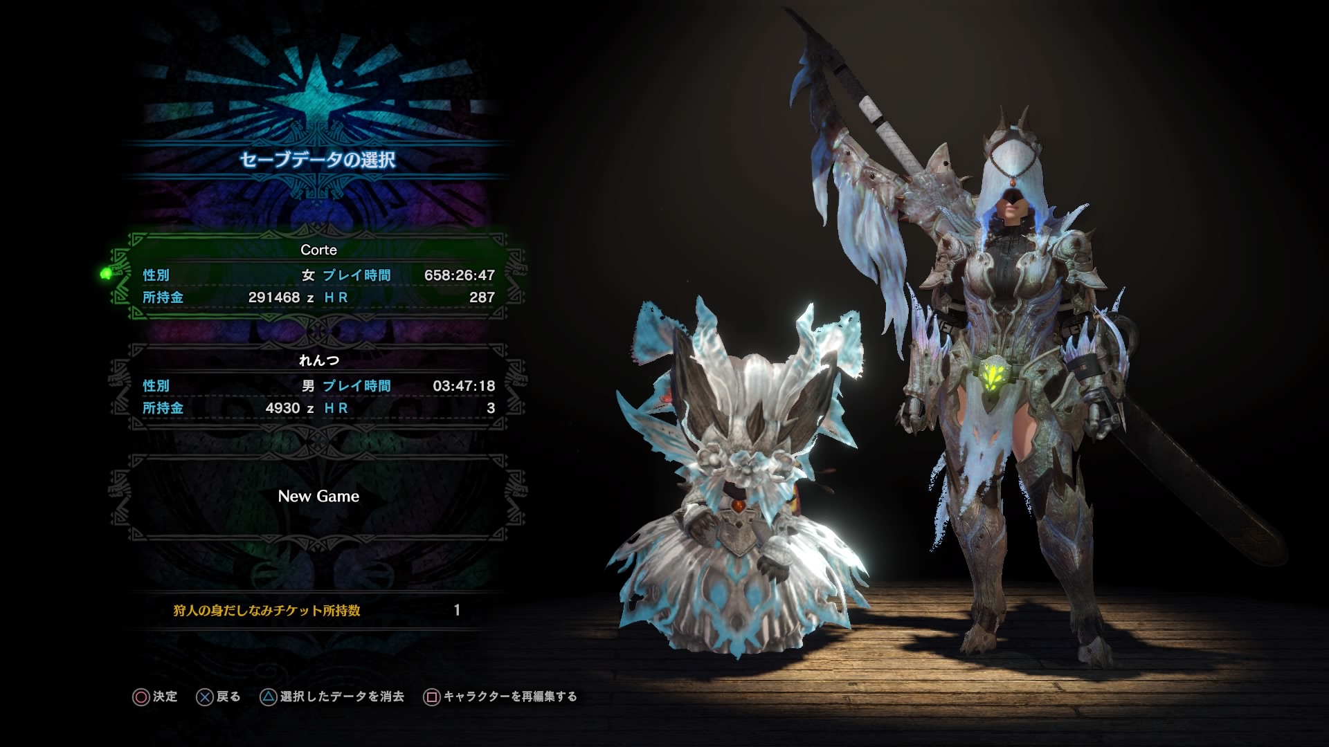 ↑キャラとアイルーはこんな感じ。当時を再現してカード撮り直したからハンターランクが高い。