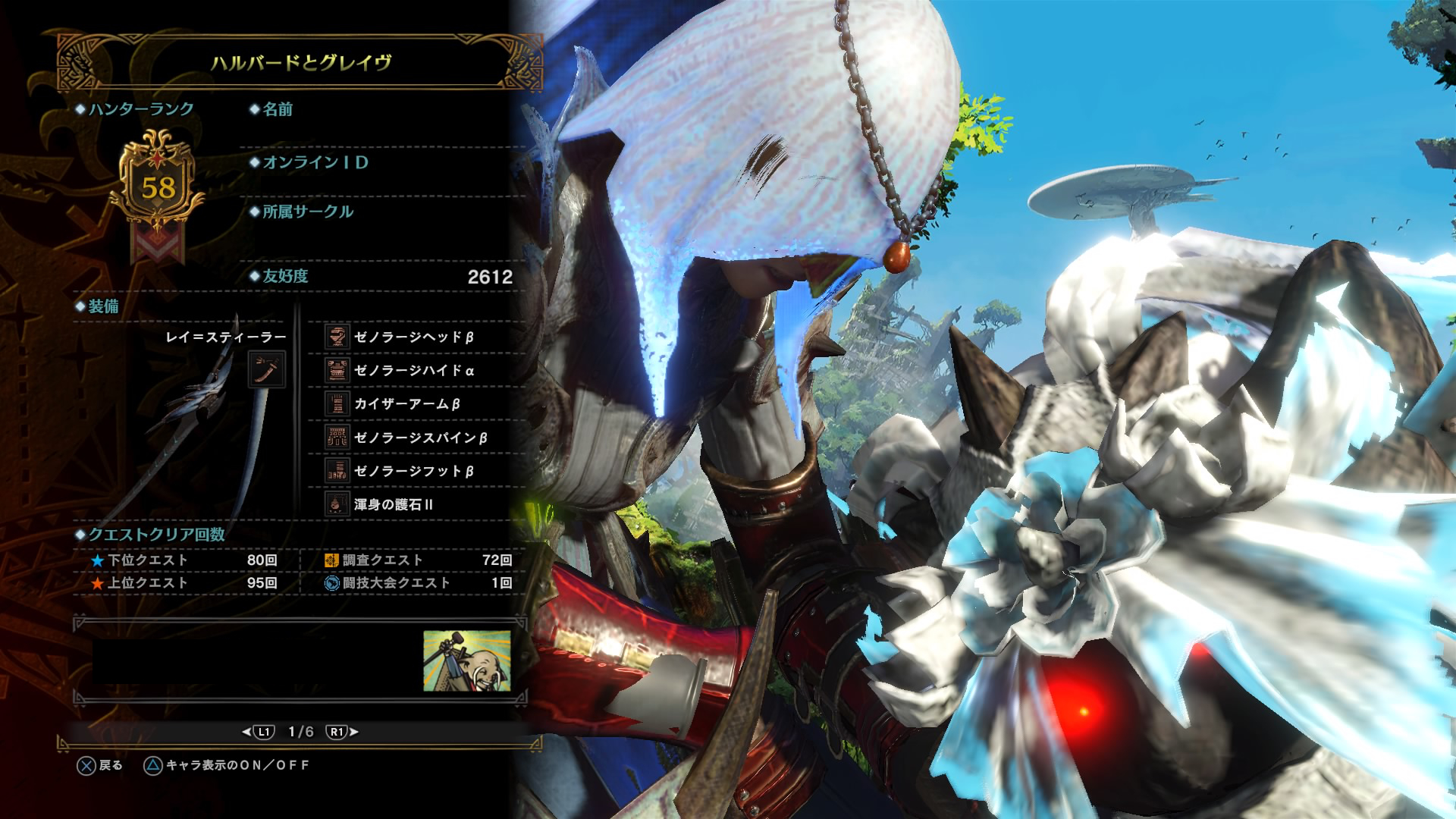 達成の瞬間の装備はMHWの物語でラスボスを担当するゼノ一式にしました。